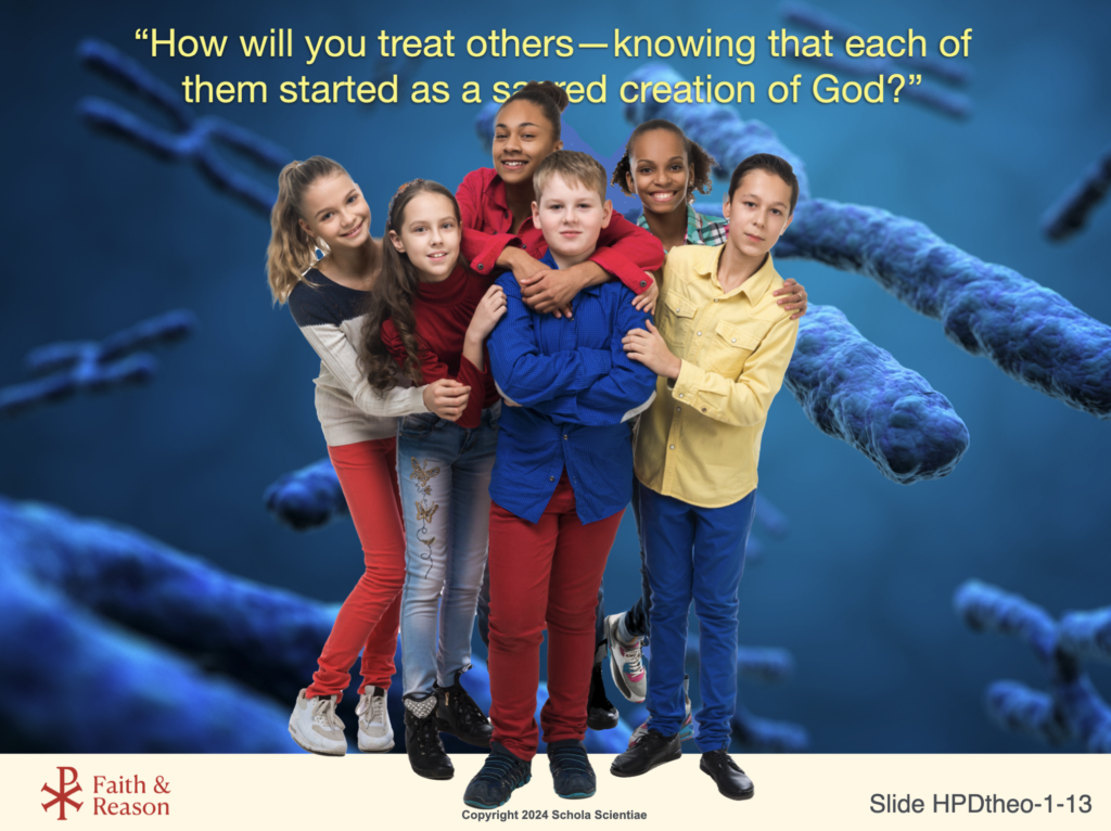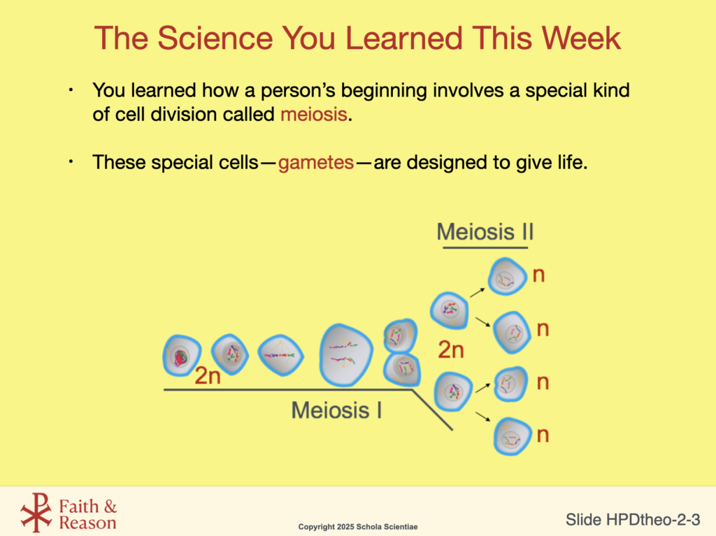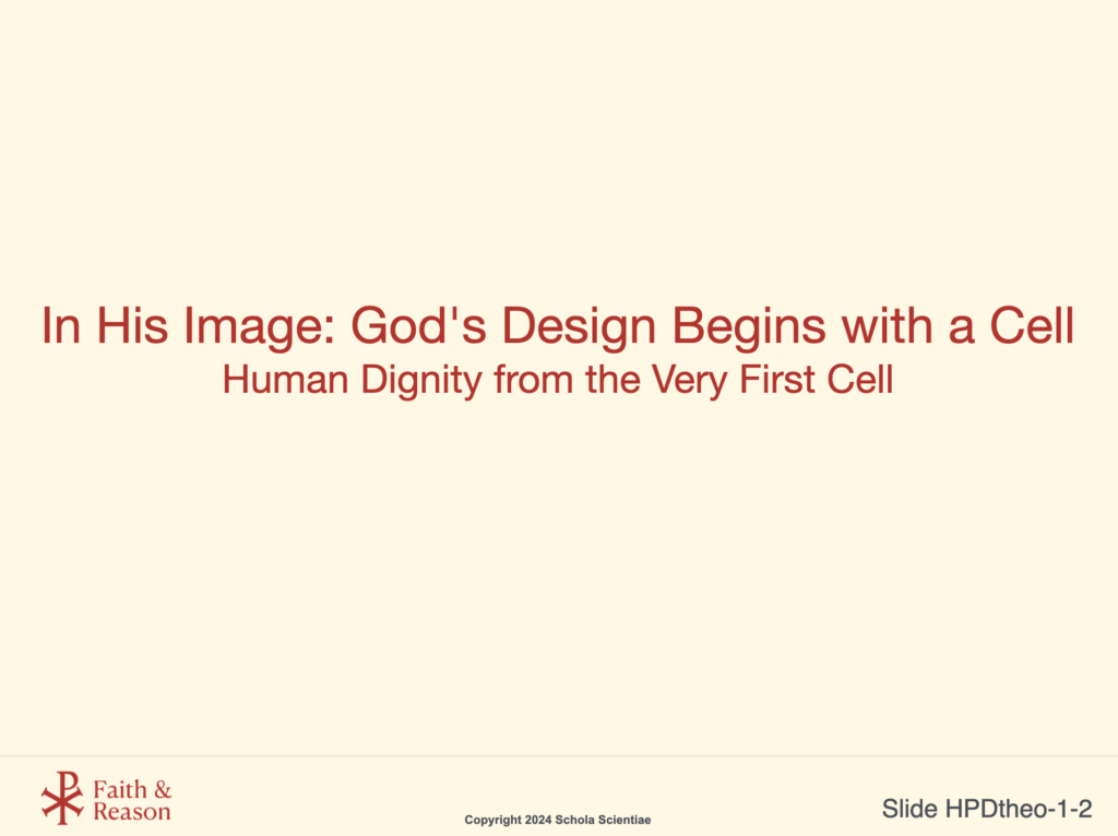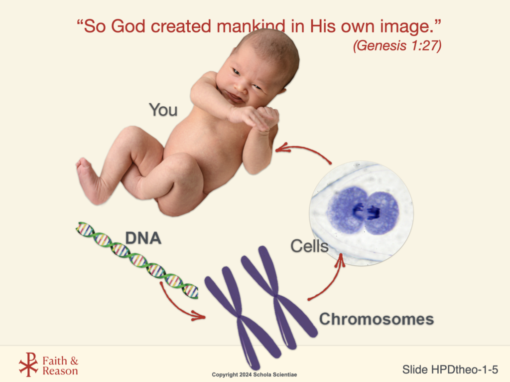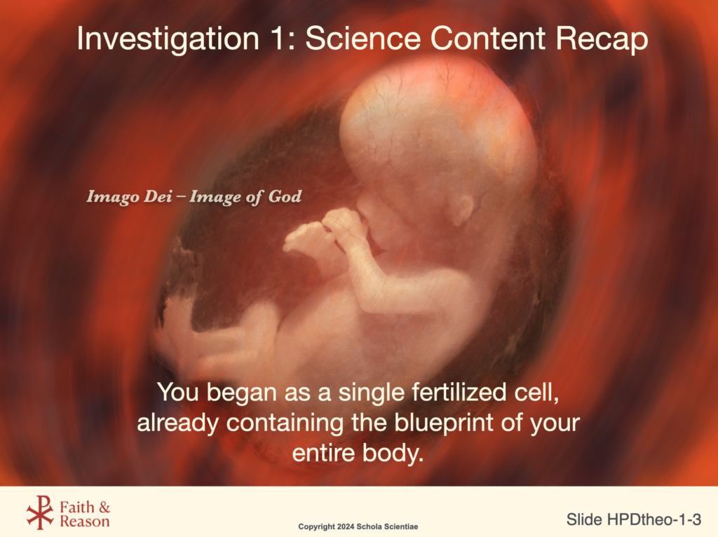 Introduce the title of the lesson. Emphasize the connection between God’s design and the beginning of life at the cellular level. Invite students to reflect on what it means for a human to be created in God’s image from the very first moment.