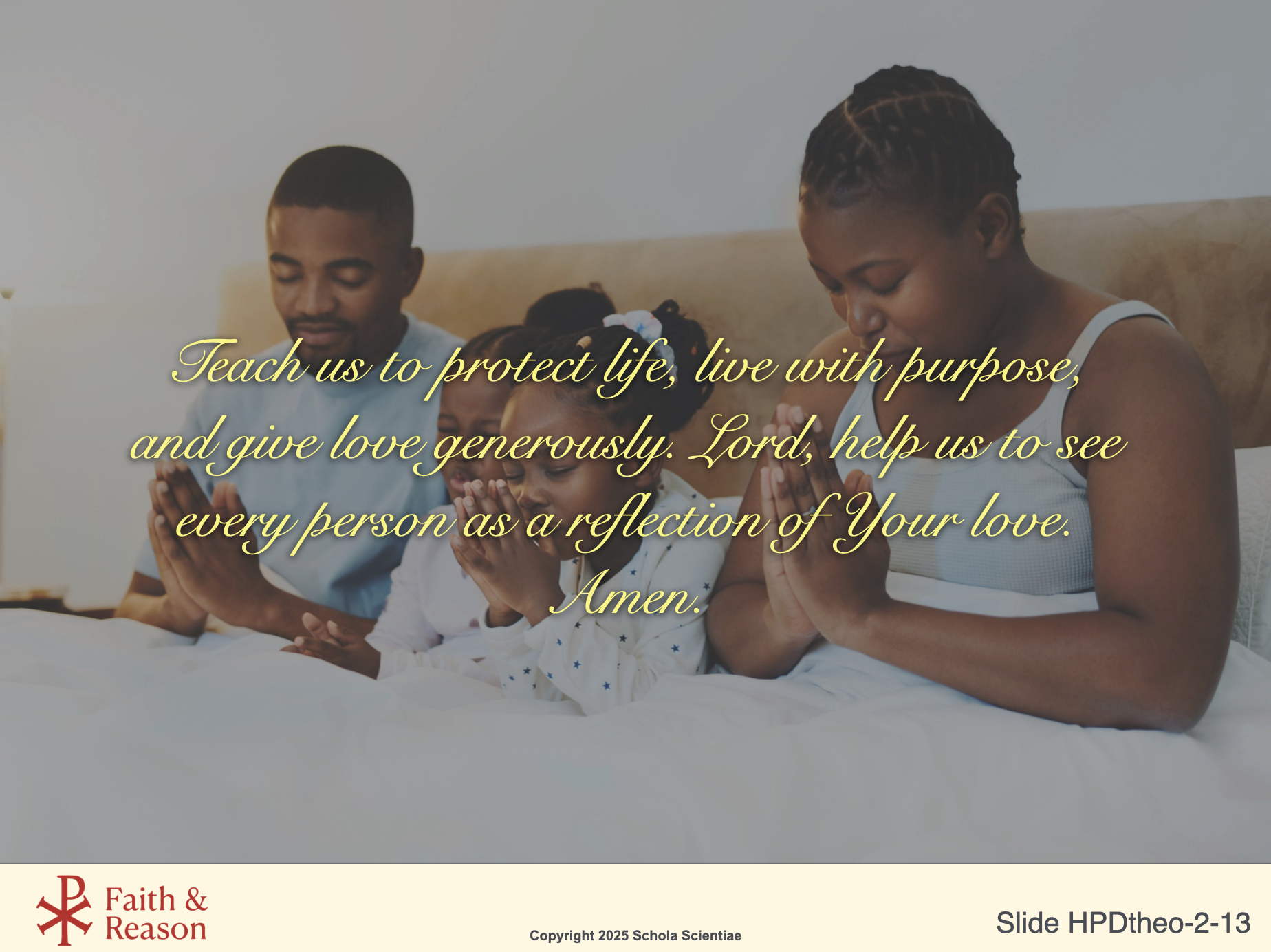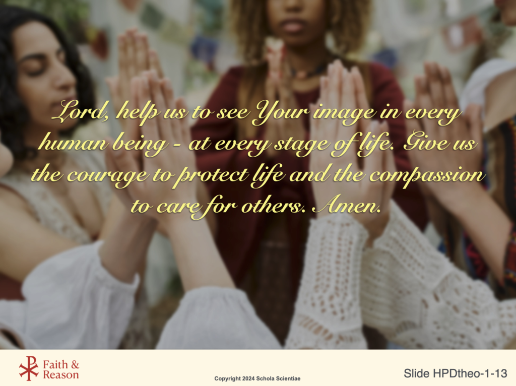 Welcome students to the theological side of the Human Prenatal Development CELL. This slide mirrors the science structure to provide familiarity. Reinforce that just as students explored the physical beginnings of human life in science, they’ll now reflect on the sacred meaning of that life.
