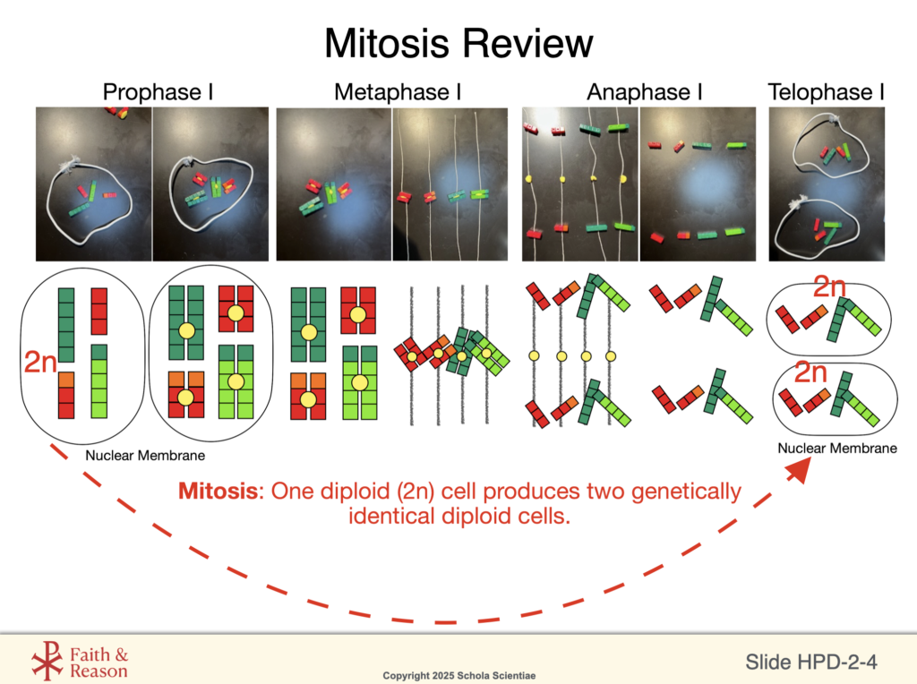 Hands-on modeling transforms an invisible, microscopic process into a concrete experience. By “doing mitosis,” students retain far more than they would from reading or diagrams. It also reinforces the central theme of the Investigation: that prenatal development depends on accurate, repeated cell division.