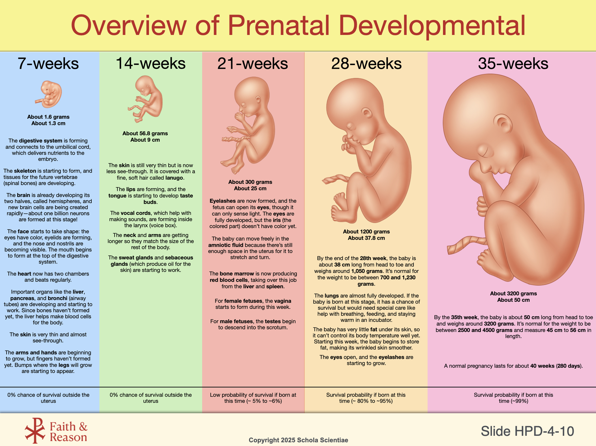 • The likelihood of survival outside the uterus increases as vital organs—especially lungs and the nervous system—reach functional maturity.