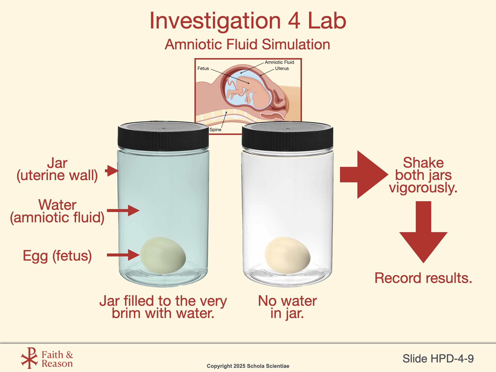 Students will compare conditions with and without fluid during the lab. Understanding the protective role of amniotic fluid ensures they interpret the results as biological protection, not chance.