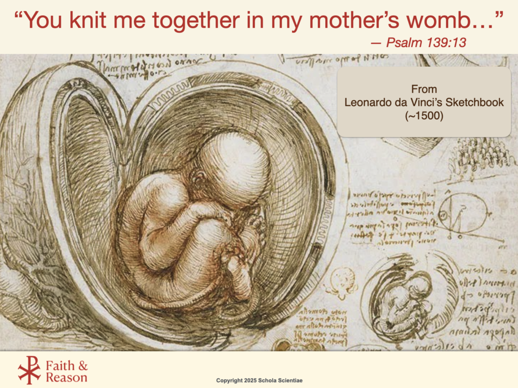 We chart the timing of the brain, heart, and lung development—but these don’t define our humanity. The Church teaches that our soul is present from conception, and our body expresses that inner reality. The body expresses the person—even before birth.